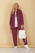 Костюм женский из кулирного полотна состоит из футболки и бриджей. Футболка прямая, горловина круглая, рукав короткий, втачной. Низ изделия подогнут на плоскошовной машине. На полочке принт. Бриджи - верх на поясе с широкой пришивной резинкой, по переду складки, в боковых швах внутренние карманы, низ подогнут на плоскошовной машине.