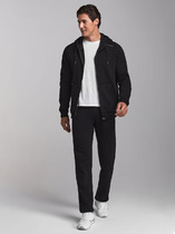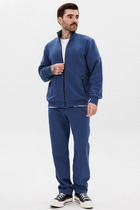 Костюм мужской из 2-х нитки "Пенье". Кофта с капюшоном, с карманом "кенгуру", рукава с широким лампасом. Брюки с кокеткой на манжетах, карман отрезной, по бокам широкий лампас. На кофте имеется печать.