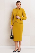 Стильный и современный комплект, состоит из бомбера и юбки. Бомбер полуприлегающего силуэта, выполнен из премиальной ткани Вельвет с добавлением вискозы. Бомбер без подкладки, по переду с застежкой на металлические пуговицы и накладными карманами с застежкой на пуговицу. Стойка горловины бомбера и манжета рукава выполнены из мягкого трикотажного довяза, что придет модели особый стиль и комфорт при носке. Рукав втачной, полной длины. Юбка прямая, слегка зауженная к низу, выполнены из премиальной ткани Вельвет с добавлением вискозы. Пояс юбки по спинке с резинкой, спереди с застежкой на пуговицу и молнию. Спереди у юбки функциональные карманы, по низу переда юбка с разрезом. Модель стильная и удобная, прекрасно подходит для ежедневной носки.