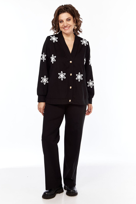 Кардиган прямого силуэта, с центральной застёжкой по притачной планке на четыре пробивные петли и пуговицы, понизу на притачном поясе. Рукава втачные, одношовные, длинные, понизу с притачными манжетами. Декорированный по переду и рукавам вышивкой.