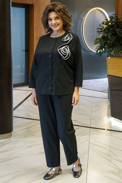 Совместные покупки Магнитогорск Женская одежда Костюмы, комплекты — Костюм ALANI 2414 черная полоска, белая вышивка