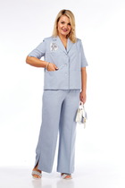 Брюки палаццо свободного кроя с притачным поясом на резинеке. В боковых шах прорезные карманы.