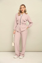 Брюки прямого кроя с высокой посадкой на притачном поясе, застежка на тесьму-молнию гарантирует удобство при носке. Удобные боковые карманы повышают функциональность изделия. Модель выполнена из качественного тканевого материала, который хорошо держит форму и подходит для деловых встреч, официальных мероприятий или повседневной носки в офисе. Этот костюм — прекрасный выбор для женщин, ценящих в одежде универсальность и изысканность.