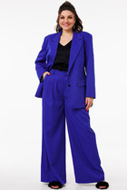 Костюм женский двойка состоящий из жакета на подкладке и брюк. Жакет полуприлегающего силуэта с центральной застёжкой на петлю и пуговицу, воротник пиджачного, по полочке с левой стороны в области груди обработан прорезной карман листочка-обманка, в области бёдер функциональные прорезные карманы с клапаном. Рукав втачной, двухшовный по низу в локтевом шве обработан разрез. Спинка цельнокроеная с отрезным бочком, переходящим на полочку.