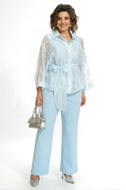 Комплект женский состоящий из бомбера и брюк. Брюки выполнены из смесового волокна льна и вискозы благодаря чему отлично садятся по фигуре и обеспечивают износостойкость. Крой брюк прямого с элегантным запахом по передним половинкам, в боковых швах обработан карман с отрезным бочком, в среднем шве застёжка на тесьму-молнию. Верхний срез обработан поясом кокеткой, застёгивающийся на потайные пуговицы и фиксирующийся завязками из ткани.