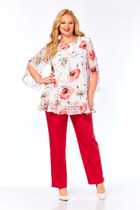 Элегантный вечерний костюм-двойка из шифона, состоящий из блузки свободного кроя и широких брюк. Красивый и эффектный брючный костюм - это идеальный образ для особых случаев, вечерних выходов, праздничных и торжественных мероприятий, будь то корпоратив, свадьба, юбилей, выпускной, день рождения, Новый год Блузка прямого силуэта из шифона со пущенной линией плеча. Рукав двойной, расширенный к низу со складками. По спинке и полочке идет планка. В комплекте с блузкой идет съемный пояс. На концах пояса металлизированная бахрома. Брюки прямые на трикотажной подкладке масло, с запахом по переду, пояс на резинке.Благодаря фасону и крою, костюм визуально вытянет силуэт, сделает фигуру стройнее, подчеркнет ее достоинства, скроет недостатки. Элегантный брючный костюм от Anastasia- комфорт и уверенность в себе на любом мероприятии Длина блузки: (48-56)-61см. Длина рукава-52см. Длина брюк:(48-54)-105см., (56)-108см.