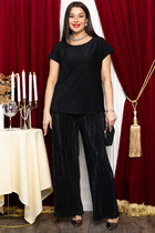 Комплект создан для тех, кто ценит комфорт и элегантность в каждой детали. В комплект входит блузка и штаны палаццо. Оверсайз крой придаёт костюму особый шарм, а легкая невесомая ткань дает свободу движений. Высокая посадка и резинка по поясу подчёркивает талию и делает силуэт более изящным. Смесь натуральных материалов позволяет пропускать воздух и отводить влагу, что особенно важно в жаркую погоду и прохладное утро. Ткань не мнется. Благодаря свободному крою костюм подойдёт для разных типов фигуры. Он подчеркнёт вашу индивидуальность и станет отличным дополнением к вашему летнему гардеробу. Этот брючный костюм — не просто одежда, это заявление о вашем стиле и вкусе. В нём вы будете чувствовать себя уверенно и комфортно, зная, что выглядите на все сто. Выбирая этот костюм, вы выбираете качество, комфорт и стиль. Выберите льняной костюм и наслаждайтесь летом в полной мере!Блузка прямого силуэта, застежка на планку и пуговицы. Воротник на отрезной стойке. По полочке идет ассиметричный подрез со вставками из 2-х видов однотона и разрезом. Плечо спущенное, рукав длинный со вставками из ткани в полоску, на манжете. По спинке идет кокетка из ткани в полоску и встречная складка. Брюки полаццо прямые с односторонней складкой и запахом по центру. По низу брюк широкая подгибка.Пояс на резинке . В качестве декора- брендированная металлическая нашивка по подрезу полочки. Длина по спинке (50-54) - 74 см, (56-60) - 76 см. Длина рукава (с манжетой): (50-54) - 57 см, (56-60)-59см. Длина брюк: (50-54) - 98 см, (56-60) - 99 см