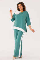 Шикарный трикотажный женский комплект  от бренда Anastasia, идеальный для любого случая. Этот комплект сочетает в себе элегантность и комфорт, что делает его подходящим как для деловых встреч или прогулок. Комплект состоит из жакета и брюк. Жакет прямого силуэта.  Застежка- планка с пуговицами. По полочке идут накладные карманы. Рукав втачной, одношовный. Подчеркнуть талию можно съемным поясом. В качестве декора- брендированная нашивка на кармане, перекликающаяся с золотыми пуговицами. Стильный комплект отлично подойдет для долгих прогулок или для работы, для офиса. Брюки, расширенные к низу, пояс на резинке, по бокам карманы. Отворот по низу на изнанку.  Отдельный части костюма легко будут сочетаться с вещами из Вашего гардероба. Модель можно отнести к стилю кэжуал. Костюм можно носить с туфлями, кроссовками или ботинками. Обязательно добавьте наш бренд в избранное и следите за новинками, распродажами, скидками и акциями! Хороших покупок от «Анастасия». Длина  (по спинке):(50-54)- 68см, (56-60)-71 см. Длина рукава: (50-60)- 60см. Длина брюк: (50-54):- 101см, (56-60)- 104см.
