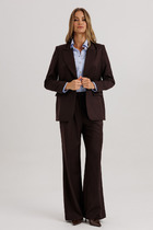 Стильный женский костюм от бренда Anastasia, идеальный для любого случая. Этот костюм сочетает в себе элегантность и комфорт, что делает его подходящим как для деловых встреч или прогулок. Комплект состоит из жакета и брюк. Костюм женский 2-хпредметный (жакет и брюки). Жакет на подкладке из текстильной ткани полуприлегающего силуэта со спущенным плечом. Приталивание по талии создается за счет кулиски с резинкой. По полочке идут грудовые выточки из бокового шва. Застежка двубортная. Воротник английского типа. По правому борту идет отделка- кант. По бокам карманы. По спинке средний шов. Рукав 3/4. Брюки, зауженные к низу. Пояс на резинке. По передней части – вставка кант. Стильный костюм отлично подойдет для долгих прогулок или для работы, для офиса. Брюки -клеш, пояс на резинке. По внутреннему срезу по низу идут разрезы. Отдельный части костюма легко будут сочетаться с вещами из Вашего гардероба. Модель можно отнести к стилю кэжуал. Костюм можно носить с туфлями, кроссовками или ботинками. Обязательно добавьте наш бренд в избранное и следите за новинками, распродажами, скидками и акциями! Хороших покупок от «Анастасия». Длина (по спинке):(50-52)- 69см, (54-58)-70 см, (60-64)-71см. Длина рукава: (50-64)- 32см. Длина брюк: (50-54):- 91см, (56-60)- 64см, (62-64)-96см