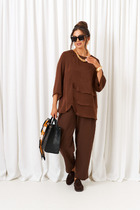 Оригинальный женский костюм от бренда Anastasia, идеальный для любого случая. Этот костюм сочетает в себе элегантность и комфорт, что делает его подходящим как для деловых встреч или прогулок. Костюм состоит из жакета и брюк. Жакет прямого силуэта без подкладки, с бочком и грудовой выточкой по полочке, по спинке вставка из кружева и завязки. Застежка двубортная, карман клапан "обманка". Рукав вточной двухшовный. Воротник пиджачного типа. Брюки- палаццо. Пояс на резинке. По низу широкая подгибка. Стильный костюм отлично подойдет для долгих прогулок или для работы, для офиса. Отдельный части костюма легко будут сочетаться с вещами из Вашего гардероба. Модель можно отнести к стилю кэжуал. Костюм можно носить с туфлями, кроссовками или ботинками. Обязательно добавьте наш бренд в избранное и следите за новинками, распродажами, скидками и акциями! Хороших покупок от «Анастасия». ВНИМАНИЕ! пуговицы могут отличаться от фото. Длина (по спинке):(48-52)- 73см, (54-56)-74 см, (58-60)-75см. Длина рукава: (48-52)- 62см, (54-56)-63 см, (58-60)-64см.. Длина брюк: (48-54)- 100см, (56-60)- 103см