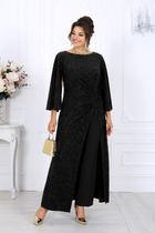 Комплект состоит из блузки топа и брюк. Блузка выполнена из однотонного креп-шифона, топ выполнен из блузочной однотонной ткани, брюки выполнены из однотонной струящейся ткани, контрастной по цвету.