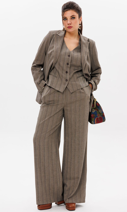 Этот костюм от Анелли - это шик и универсальность. Жакет бойфренда сочетает в себе элегантность и комфорт, прямые брюки на резинке с карманами придают вам стройность и уверенность, а жилет завершает образ, добавляя нотку роскоши. Все это - актуальная классика, которая никогда не выйдет из моды.