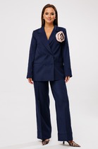 Яркий и эффектный двухпредметный женский комплект состоит из классического жакета и удобных брюк. Комплект выполнен из принтованной хлопковой ткани, которая не сковывает движения и идеальна для теплой погоды.