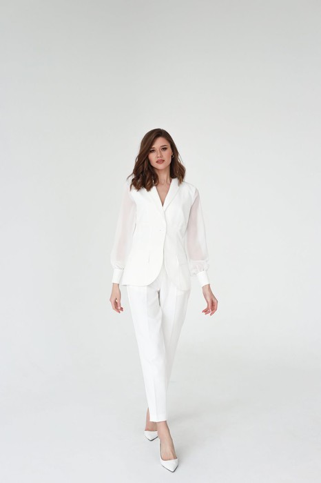 Костюм двойка: жакет белый с шифоновой спинкой+прямые брюки