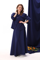 Жакет прямого силуэта с центральной застёжкой на петли и декоративные пуговицы и контрастными отделочными деталями: планки,обтачки горловины,подборта, манжеты,нижние клапаны.Перед с нагрудными вытачками из пройм,накладными карманами с двойными клапанами и декоративными пуговицами.Спинка цельная.Рукава втачные одношовные длинные.Жакет без подкладки.