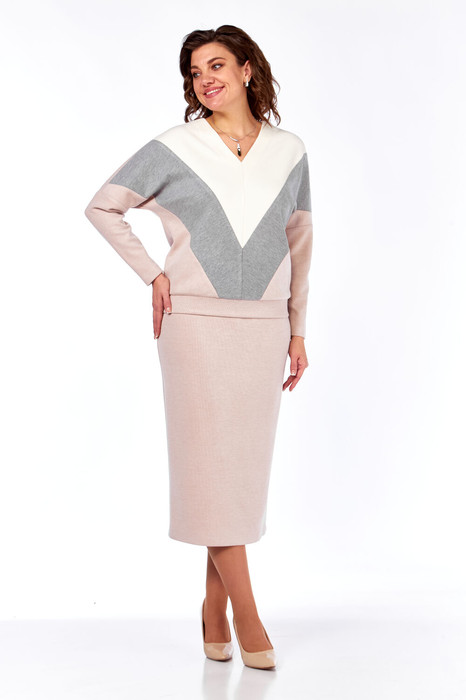 Костюм женский двухпредметный состоит из свободного джемпера и длиной юбки,выполнен из  трикотажного полотна под вельвет в мелкий рубчик 3 цветов.