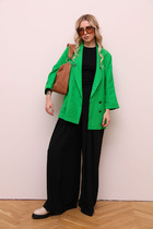 Платье прямого силуэта , "оверсайз", с цельнокроеным рукавом длиной 3/4, заканчивающимся притачной отложной манжетой, выполнено из двух видов ткани. Перед с втачными планками по горловине и центральной застёжкой на 2 кнопки, и декоративным элементом из сетки. Воротник - стойка. Спинка с отрезной кокеткой из сетки и средним швом. В боковых швах разрезы.