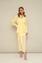 Нарядный женский комплект состоит из свободного платья-рубашки ,выполненного из плательно-костюмной ткани "Шуршун"  и прозрачной юбки назапах, выполненной из  сетки.