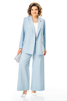 Женский двухпредметный костюм состоит из свободной блузы и широких брюк,выполнен из однотонной плательно-костюмной ткани.