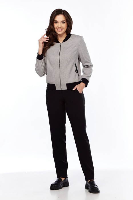 Комплект женский состоит из бомбера, выполненного из трикотажного полотна в рисунок "ёлочка" и довяза ,и брюк, выполненных из гладкой однотонной костюмной ткани.
