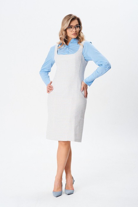 Сарафан выполнен из ткани "шанель", рубашка - текстиль.