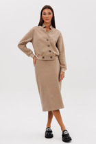 Сарафан прилегающего силуэта, длиной миди. Вырез горловины квадратный по полочке и округлый по спинке. Бретели цельнокроеные от полочки, застегиваются на спинке на петли и пуговицы. По полочке по две талиевые вытачки для лучшего прилегания.