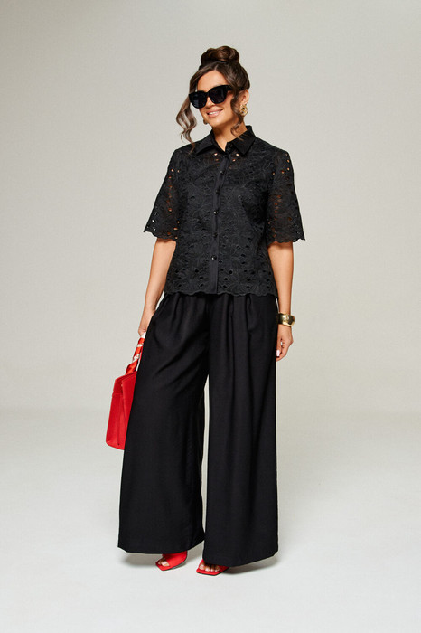 Комплект с широкими брюками «палаццо» идеально подойдет для создания лаконичных офисных луков, а также для повседневного использования. Такие модели смотрятся необыкновенно женственно и эффектно.