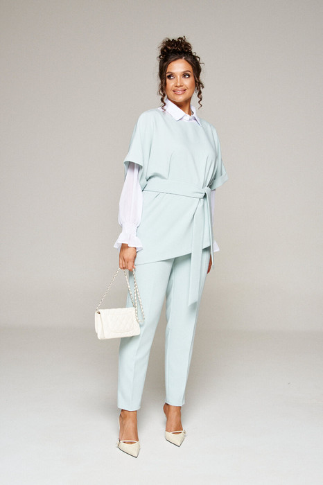 Костюм Olga Style Л413 молочный-зеленый
