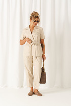 Созданный с акцентными деталями из ткани с натуральными волокнами, костюм подойдет для любой летней погоды и для любого случая выхода.