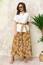 Брюки свободного кроя с притачным поясом на резинке с островком. Это конструктивное решение для идеальной посадки по фигуре.