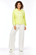 Комплект женский-двойка, из текстильной ткани, жакет удлиненный, полуприлегающего силуэта с центральной бортовой застежкой на пуговицы до линии перегиба лацкана. Спереди рельефные швы от плечевого шва, отрезной бочок и карман с клапаном. Спинка с рельефами от плечевого шва. Рукав втачной, двухшовный. Воротник пиджачного типа. Жакет на подкладке, длина по спинке 67 см, длина рукава 62 см. Брюки прямые, классические, с заутюженными стрелками, по переду обработаны карманы с отрезным бочком, застежка на тесьму-молнию и 1 пуговицу. На задних половинках обработаны вытачки и имитация карманов с листочкой, пояс в брюках притачной. Длина брюк от талии по боковому шву 103 см.