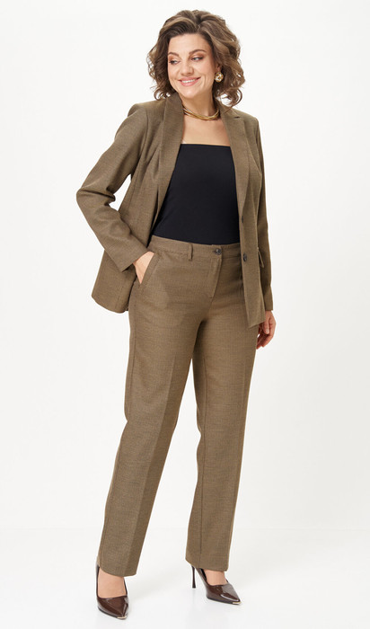 Классический костюм, идеальный баланс элегантности и стиля. Универсальный крой, пиджак с пиджачным воротником и прямые брюки создают выигрышный силуэт для любой фигуры. Практичные детали, карманы с клапанами добавляют костюму солидности и функциональности. Жакет на подкладке, длина по спинке 67 см, длина рукава 62 см. Длина брюк от талии по боковому шву 103 см.