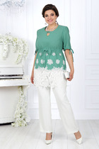 Женский комплект 2-х предметный состоит из жакета и юбки. Жакет классический,с V-образным вырезом, полуприлегающего силуэта с центральной бортовой застежкой на петли-пуговицы. Спереди рельефные швы от плечевого шва, отрезной бочок и карман с втачной листочкой. Спинка с рельефами от плечевого шва. Рукав втачной, двухшовный, укороченный. Перед жакета на подкладке. Длина рукава 48 см, длина жакета по спинке 59 см. Юбка прямого силуэта, верхний срез юбки обработан обтачкой, заднее полотнище со средним швом, застегивается на потайную молнию. Шов переходит к низу в шлицу. Юбка по переднему и заднему полотнищу с кокеткой и вертикальными рельефами, швы отстрочены в цвет юбки. Длина по боковому шву 70 см. Юбка на подкладке.