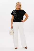Этот комплект создан для того, чтобы вы забыли о вопросе «Что надеть?». Мы объединили две вещи, которые составляют основу стильного и практичного гардероба. Верх: блуза прямого кроя из нежного текстиля. Рукава 3/4 с манжетами и отложной воротник дарят образу лёгкость и утонченность. Центральная застежка на пуговицы и боковые разрезы добавляют практичности. Длина по спинке 74 см, длина рукава 45. Низ: классические прямые брюки с заутюженными стрелками, которые визуально вытягивают силуэт. Скрытая резинка по бокам гарантирует невероятный комфорт, сохраняя безупречный вид спереди. Длина брюк от талии по боковому шву 103 см.