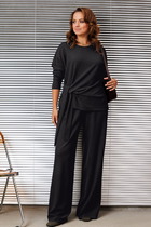 Костюм женский полуприлегающего силуэта, джемпер и юбка. Юбка выполнена из блестящей тани, с отрезной кокеткой, разрезом и каррманоми в боковом шве. Джемпер с цельнокроенным рукавом и разрезами в боковых швах