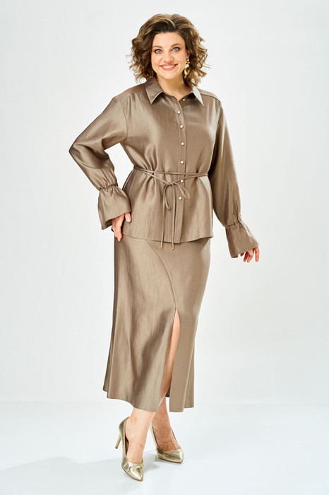 Костюм состоит из блузы-рубашки и юбки.