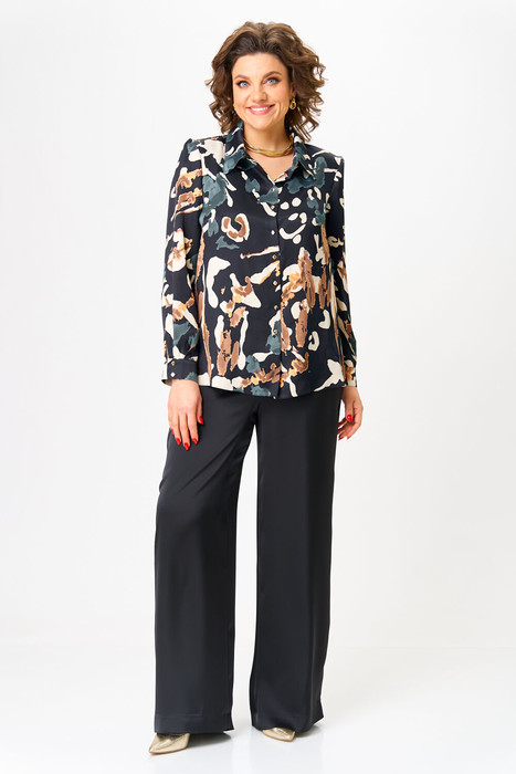 Рубашка из атласа, полуприлегающего силуэта с центральной застежкой на декоративные пуговицы, воротник рубашечный со стойкой. Рукава втачные, по низу с манжетом, застежка на петли пуговицы.