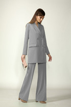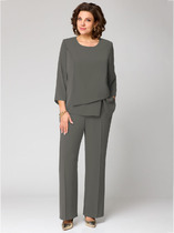 Комплект, состоящий из блузки и брюк, из струящейся ткани. Блузка полуприлегающего силуэта, с V- образным вырезом горловины. Рукава втрачные, длина 3/4. Для прилегания талии, в комплект входит пояс из основной ткани. Брюки  лаконичные, прямого силуэта, пояс на резинке. Идеальный вариант для торжественных мероприятий, встреч с друзьями.