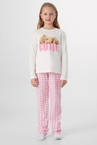 Эффектный костюм для девочки из хлопкового полотна с лайкрой. Футболка с принтом в модной стилистике, свободная, со спущенной линией плеч, округлым вырезом горловины, короткими рукавами. Шорты-юбка с боковыми карманами, на притачном поясе с отстроченной эластичной тесьмой.