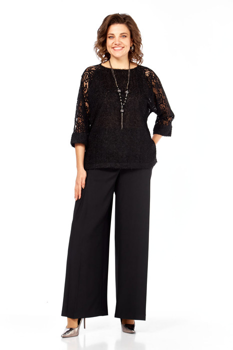Комплект женский брючный 2-х предметный. Праздничная элегантная блузка полуприлегающего силуэта, выглядит эффектно, прекрасно подойдет для вечерних мероприятий. Горловина аккуратной округлой формы. Рукав выполнен из мягкого кружева, что придает дополнительный шарм, длина 7/8. В боковых швах предусмотрены разрезы. Невероятно комфортные, элегантные брюки-палаццо, образ в котором будет привлекать к себе внимание окружающих. Идеально подходит как для офиса, так и для вечернего выхода. Брюки свободные. По переду заложены складки, в боковых швах расположены боковые карманы, застежка-молния. Пояс притачной, сзади на резинке, это обеспечивает комфортную посадку. Широкий крой палаццо добавляет образу легкость и непринужденность, стрелки визуально удлиняют силуэт