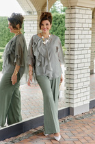 Состав: Жакет- Вискоза-32%; ПЭ-65%; Спандекс-3%; Отделка- Хлопок-100%; Брюки- ПЭ-95%; Эластан-5%;