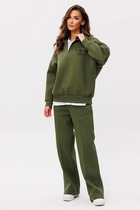 Костюм женский состоит из жилета и брюк, жилет приталенный, укороченный  классический с V-образным вырезом горловины. Низ- фигурный, застежка петля-пуговица. Брюки классического кроя, завышенной посадки на притачном поясе с резинкой, застежка молния на гульфике.