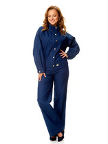 Комплект 2-х предметный, состоящий из блузона и юбки. Блуза без воротника с круглым вырезом горловины и центральной застёжкой на пуговицы, декорирована притачным воланом. Рукав и спинка с декоративным разрезом. Юбка прямая с притачным поясом и застежкой по центру спинки на молнию. По низу юбки притачной волан, по среднему шву спинки разрез. Длина блузон по спинке 54 см. Длина рукава 31 см. Длина юбки 70 см.