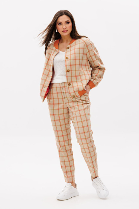 "Тэнсол", "принц Уэльский", тартан", гусиная лапка... Эти стильные принты помогут выделиться из толпы тем, кто не любит яркие детали. Костюм из такой ткани смотрится выигрышно сам по себе и не требует дополнительных акцентов. Для активных и современных девушек мы предлагаем в весеннем сезоне не стандартный вариант брючного костюма, а смелое сочетание трендовой ткани и спортивного стиля: классические брюки +спортивный бомбер. Согласитесь это смотрится великолепно! Свободный силуэт, покрой реглан, застежка центральная, воротник, манжеты рукавов и низ изделия из отделочной тесьмы-довяза. Полочка с боковым рельефом и карманом. Брюки классического покроя с отрезным поясом (эластичным в области спинки),ж наклонными боковыми карманами и мягкими складками на передних половинках.
