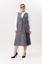 Модель дополнена майкой из хлопчатобумажного трикотажного полотна, свободного покроя, без рукавов.
