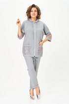 Рукав с отрезной манжетой. Брюки на притачном поясе, эластичном в области спинки, с наклонными боковыми карманами.