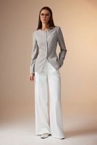 Брюки в расслабленном стиле. Высокая посадка, боковой карман с листочкой, эластичный пояс с люверсами и отделочным шнуром. Длина брюк около 104 см
