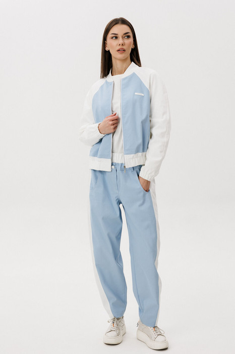 Широкие брюки придают образу трендовую выразительность и свободу движений, а свежий голубой оттенок добавляет легкости и визуальной чистоты. Комплект легко комбинируется с базовыми футболками, топами и кедами, создавая стильные повседневные образы.