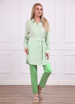 "Женский комплект ""Удеса"" состоит из брюк и туники свободного покроя. Туника оверсайз выполнена из текстильной ткани без подкладки, ткань легкая, стрейч и очень практичная в носке. Рукав цельнокроеный, горловина обработана обтачкой, обтачка закреплена отделочной строчкой. Низ изделия обработан швом в подгибку, по центру полочки нашита тесьма (монетки на сетке), низ рукава тоже обработан декоративной тесьмой.
