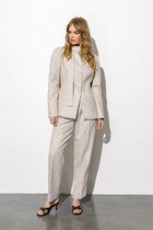Женский брючный комплект "Магрита" выполнен из текстильной ткани "Нотус" и состоит из брюк и рубашки. Этот комплект выполнен из натуральных тканей (хлопка и льна), а также для эффекта создания легких полосочек используется во составе нейлон.